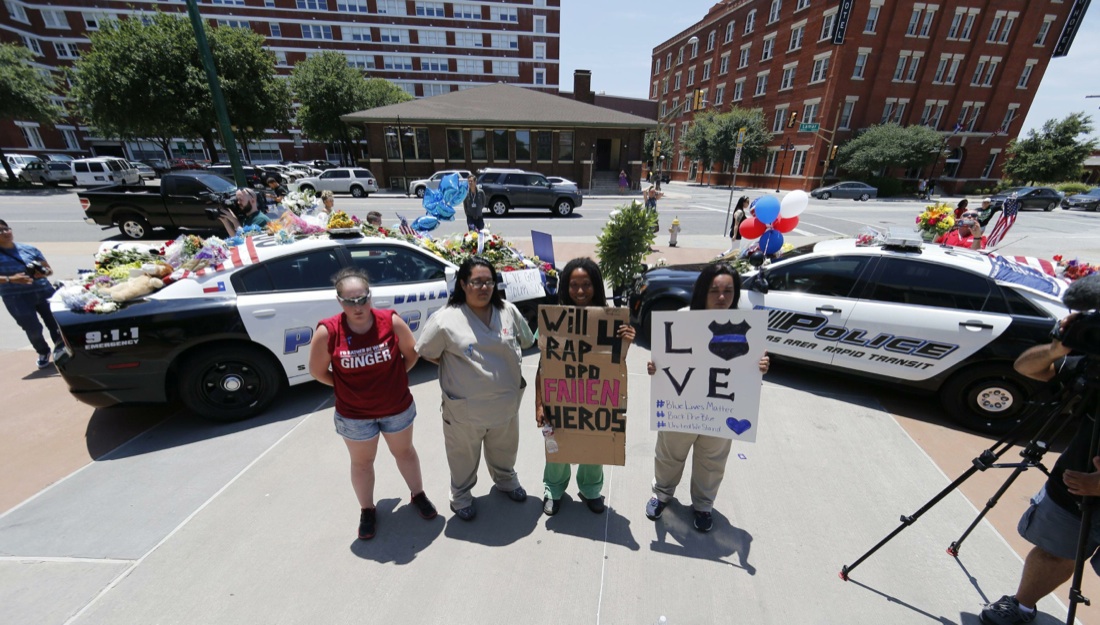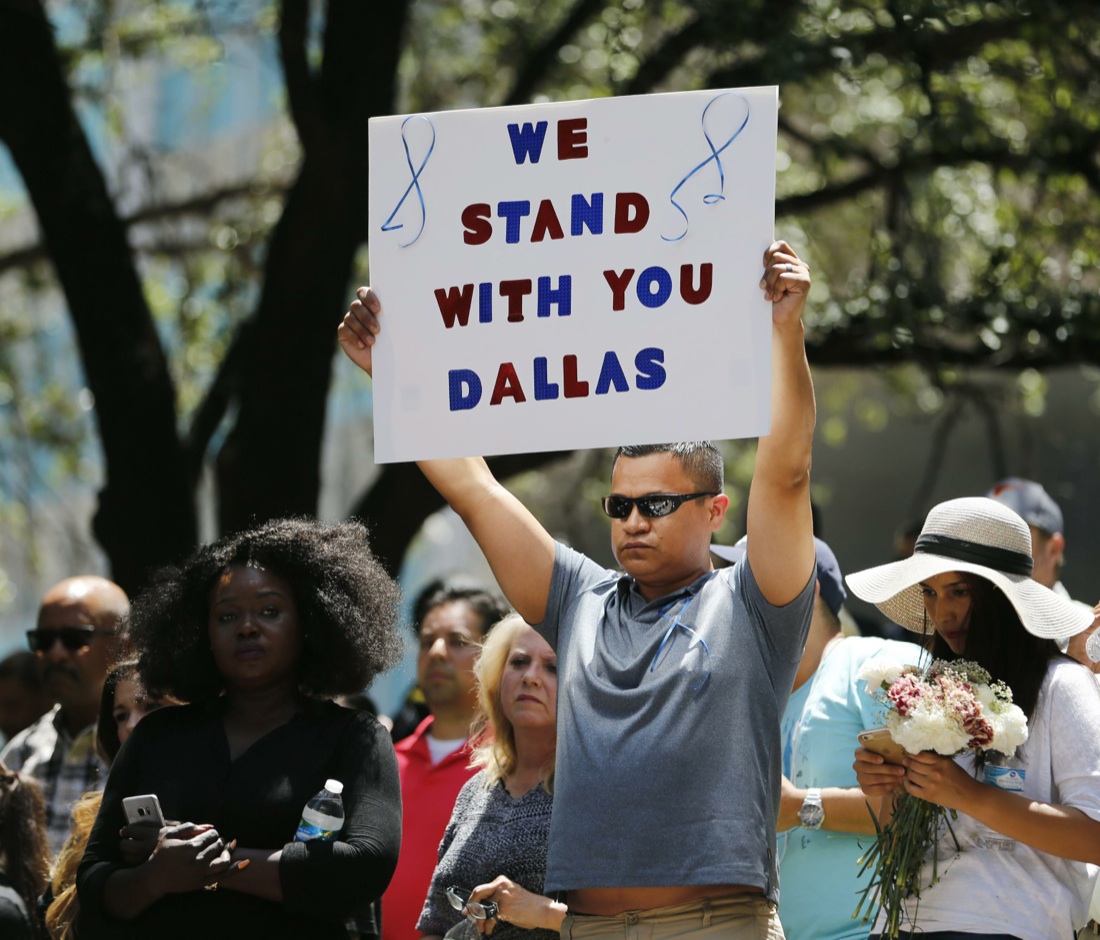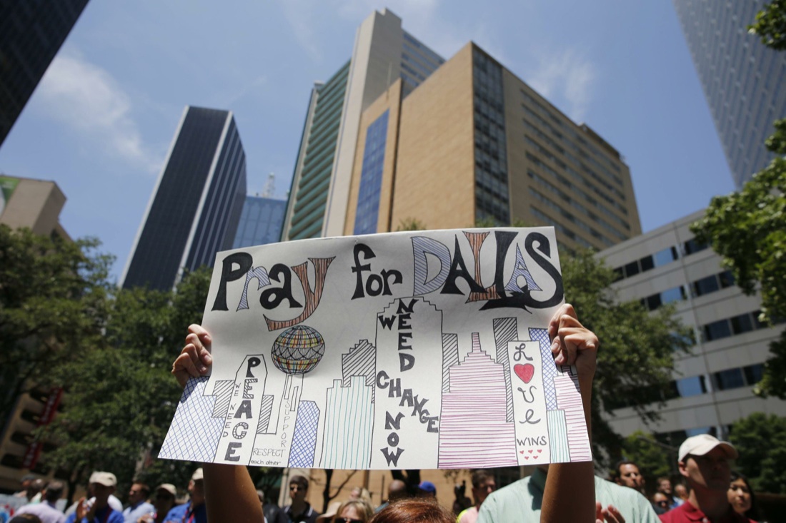 Dallas, 8 luglio 2016. Il cordoglio e le commemorazioni per i poliziotti vittime della sparatoria durante un corteo antirazzista