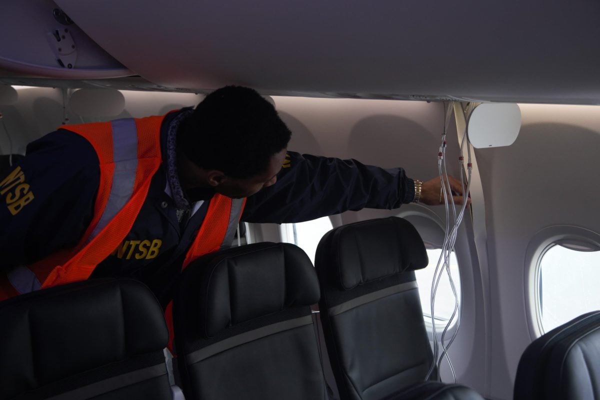 I registri Boeing esaminati dall’Ntsb hanno mostrato che i punti di fissaggio danneggiati sul bordo del telaio davanti ai vincoli sono stati sostituiti dai dipendenti Spirit AeroSystems presso lo stabilimento Boeing di Renton, Washington, il 19 settembre 2023. Boeing ha dovuto aprire il tappo rimuovendo i due bulloni di arresto del movimento verticale e i due del binario di guida superiore per sostituire i componenti, ma la documentazione fotografica ottenuta da Boeing ha mostrato prove che il tappo era chiuso senza bulloni in tre posizioni visibili. Questa analisi pare quindi scagionare il fornitore Spirit AeroSystems, e originariamente installato nella fusoliera prima che l’esemplare fosse consegnato allo stabilimento di assemblaggio finale, operazione che prevede la rimozione del finto portello per il completamento degli arredi e della livrea. Alcune prove fotografiche scattate durante le operazioni presso Boeing suggerirebbero che quando la parte è stata reinstallata, almeno tre dei quattro bulloni di bloccaggio non sono stati rimessi al loro posto. Un’ipotesi suffragata anche dal fatto che i danni riscontrati sul finto portello nella zona dei cardini, così come l’assenza di danneggiamenti nelle aree in cui avrebbero dovuto esserci i bulloni sulla fusoliera, suggeriscono che questi mancavano prima che la porta si spostasse dalla sua posizione normale.