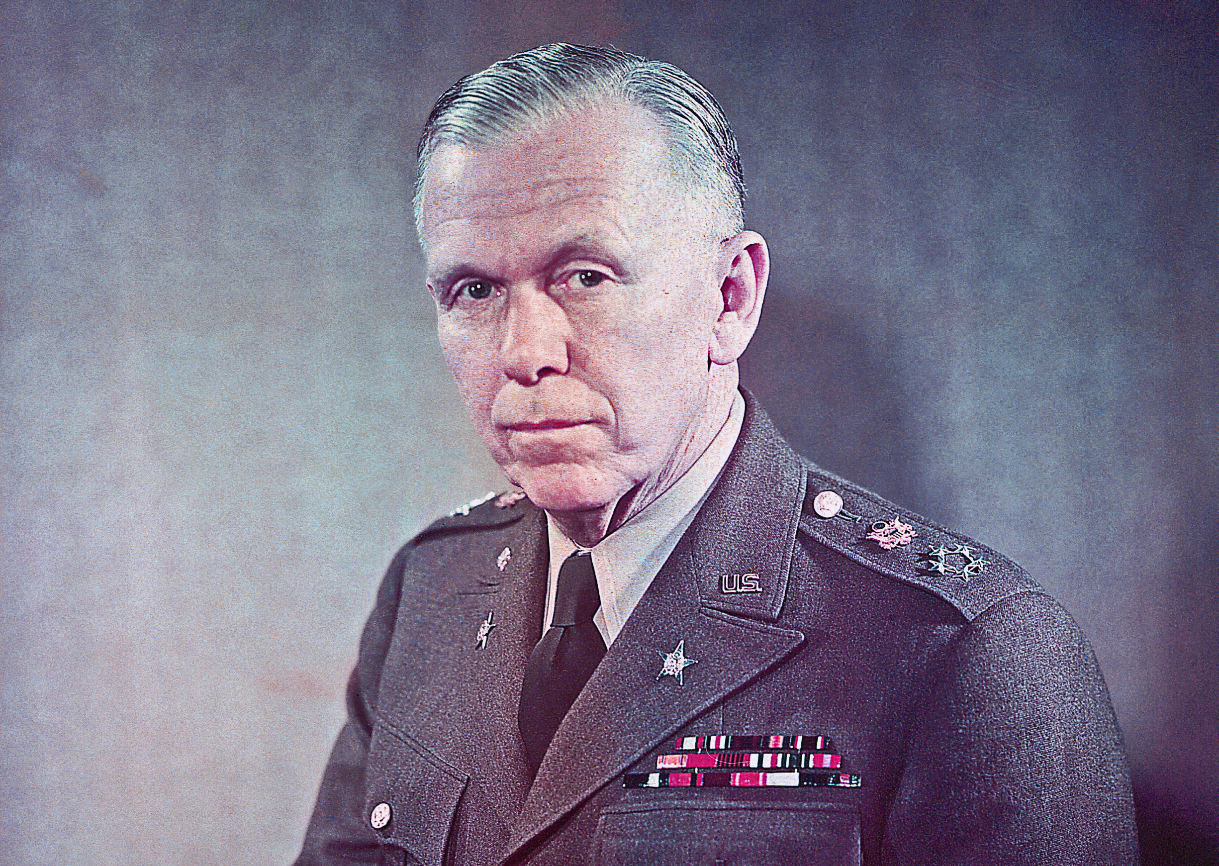 Diventato capo di stato maggiore nel 1939, Marshall riorganizzò profondamente le forze armate statunitensi, congedò i comandanti più anziani e li rimpiazzò con uomini destinati a diventare famosissimi come Dwight Eisenhower, Omar Bradley e George Patton. Addirittura nel 1944 Marshall era tra i candidati al comando dell’operazione Overlord (lo sbarco in Normandia). Finita la guerra, Truman lo chiamò al suo fianco e gli diede l’incarico che lo fece entrare nella storia. Nel 1953 Marshall fu premiato con il Nobel per la pace e sei anni dopo morì.