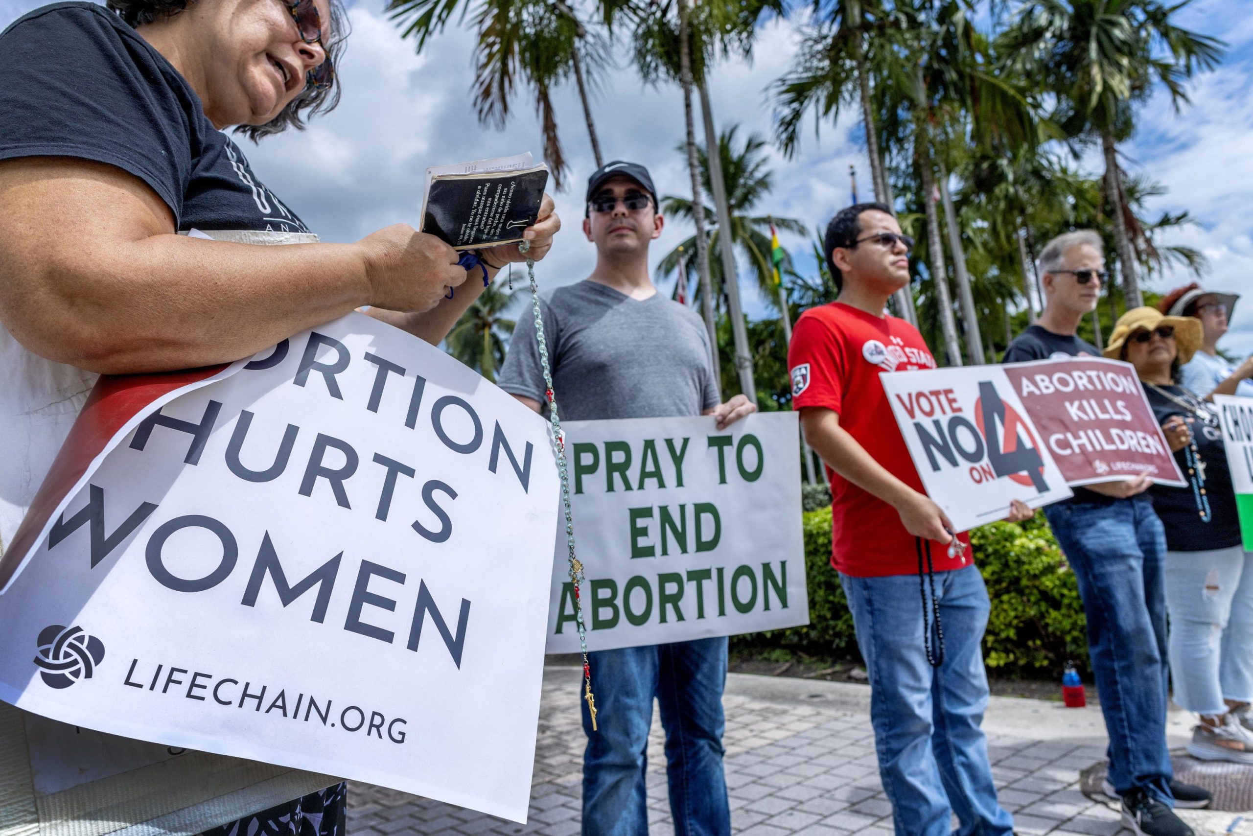 Secondo l’ultimo sondaggio di Florida Atlantic University e Mainstreet Research, il 56 per cento è favorevole e il 21 per cento è contrario. Nello Stato «pro-life» e «pro-choice» quindi si scontrano duramente. Il primo fronte è guidato da DeSantis, che governa la Florida da sei anni è alla testa della crociata anti-woke. Ha approvato la legge «Don’t Say Gay», che limita l’insegnamento fino alla terza elementare di temi legati a razza, orientamento sessuale e identità di genere, e per cui è in rotta di collisione con il gigante economico Disney. Una sfida sulla libertà d’espressione giunta in tribunale. Sull’aborto, DeSantis s’è scagliato contro i giudici della Corte suprema statale – cinque su sette sono su sua nomina – per non aver impedito il voto sull’Emendamento 4. Al suo fianco è schierata la Florida Conference of Catholic Bishops, voce non partitica dei vescovi cattolici delle diocesi della provincia di Miami: «La vita umana è sacra, ma nel nostro Stato è distrutta ripetutamente dall’aborto» dice a Panorama Tammy Fecci, membro della Conferenza. «L’Emendamento 4 promuove l’idea che i bambini siano “usa-e-getta”. Vogliamo proteggerli assieme alle donne. Questa pratica sanitaria è una minaccia». Sull’altro fronte, tra i «pro-choice» c’è la League of Women Voters of Florida, che si occupa di assistenza sanitaria, diritti riproduttivi ed educazione sessuale: «Ogni cittadino merita la libertà di prendere decisioni mediche senza intrusioni governative. L’Emendamento 4 è la strada per mitigare la crisi sanitaria nel Sud-est e riportare il potere nelle mani delle persone» ribatte Blake Summerlin, responsabile della comunicazione dell’organizzazione.