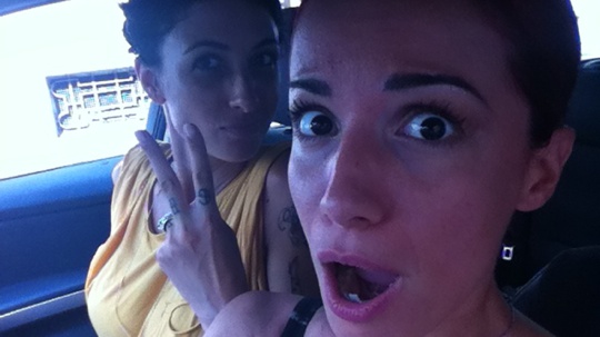 Tanto per cominciare grazie al cielo a Milano non faceva tutto ‘sto caldo, e quindi siamo arrivate tutte d’un pezzo in sede. Ci hanno accolte (ah sono andata con Ema Stokholma come potete vedere dalla foto) come le regine del Celebrità (Max Pezzali è sempre con me).