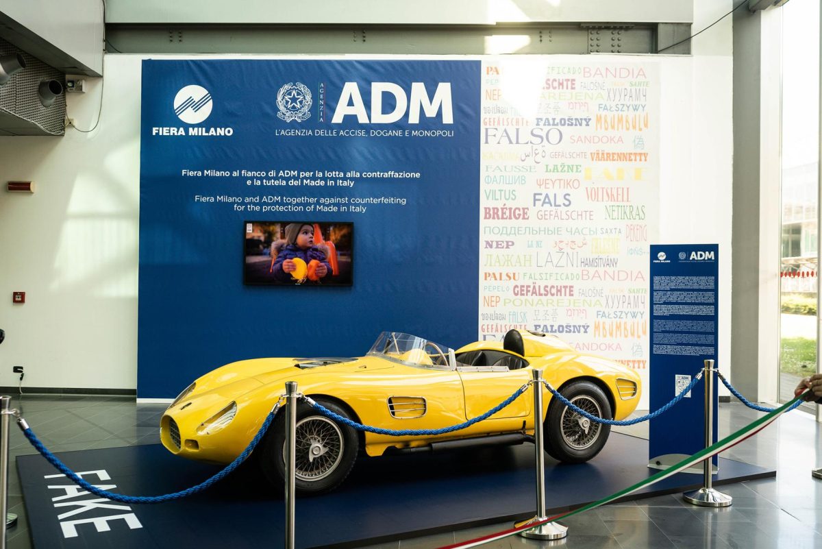 Gialla, bellissima, a prima vista quasi perfetta, evocativa di tempi gloriosi. Invece è una provocazione in piena regola: la Ferrari Dino 196 S del 1958 esposta nel foyer del Centro servizi di Fiera Milano a Rho in occasione dell’evento dedicato alla prevenzione della contraffazione è solo una grossolana imitazione, con volante, sedili e interni non conformi, con dimensioni passo-lunghezza e altezza differenti dall’originale e con materiali diversi dall’unica, inimitabile Ferrari.