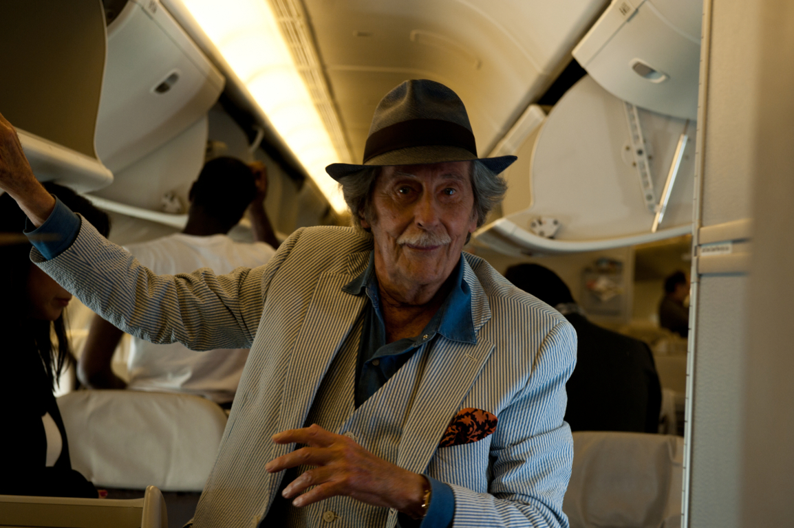 Claude (Jean Rochefort) a bordo dell’aereo che lo porta a Miami: viaggio reale o metafisico?