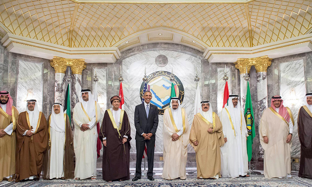 Il Presidente USA, Barack Obama in posa con il re dell’Arabia Saudita, Salman bin Abdulaziz Al Saud e altri leader, membri del Consiglio di cooperazione del Golfo, a Riyad, in Arabia Saudita. Obama è alla sua quarta e ultima visita di Stato nel regno saudita.