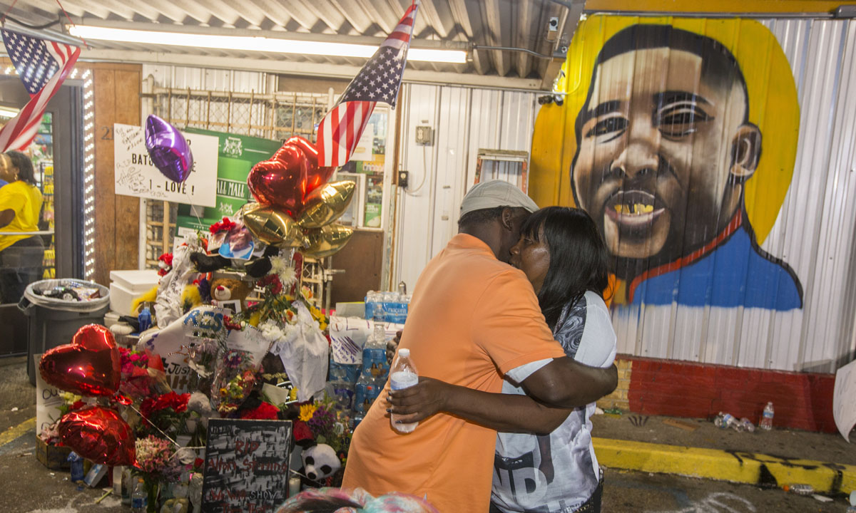 7 luglio 2016. Sandra Sterling, zia di Alton Sterling, fa visita al memoriale allestito in memoria dell’uomo a Baton Rouge, in Louisiana. Sterling, un ambulante 37enne, è morto sotto i colpi di un poliziotto. Alla diffusione di un video che mostra l’assassinio, la comunità nera è scesa in strada a manifestare rabbia e dolore.