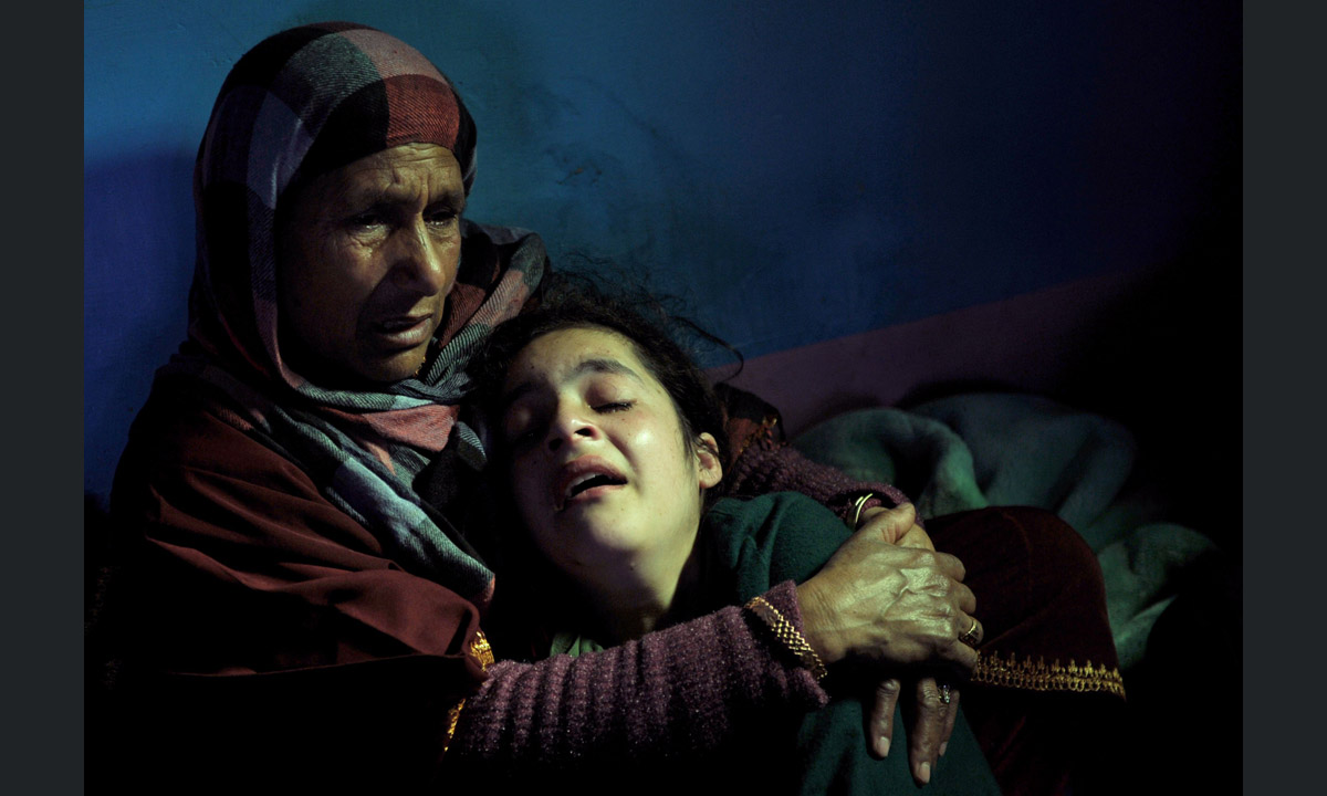 Due parenti piangono la perdita di Raja Begum, 70 anni, durante il suo corteo funebre a Langate, vicino a Handwara, in Kashmir, India. La donna è stata ferita a morte durante degli scontri con le forze di sicurezza, insieme ad altri due civili. La manifestazione era stata scatenata dalla presunta molestia su una studentessa adolescente compiuta da un militare. I soldati hanno sparato sui manifestanti dopo un assalto a una postazione dell’esercito e a incendi nella città.