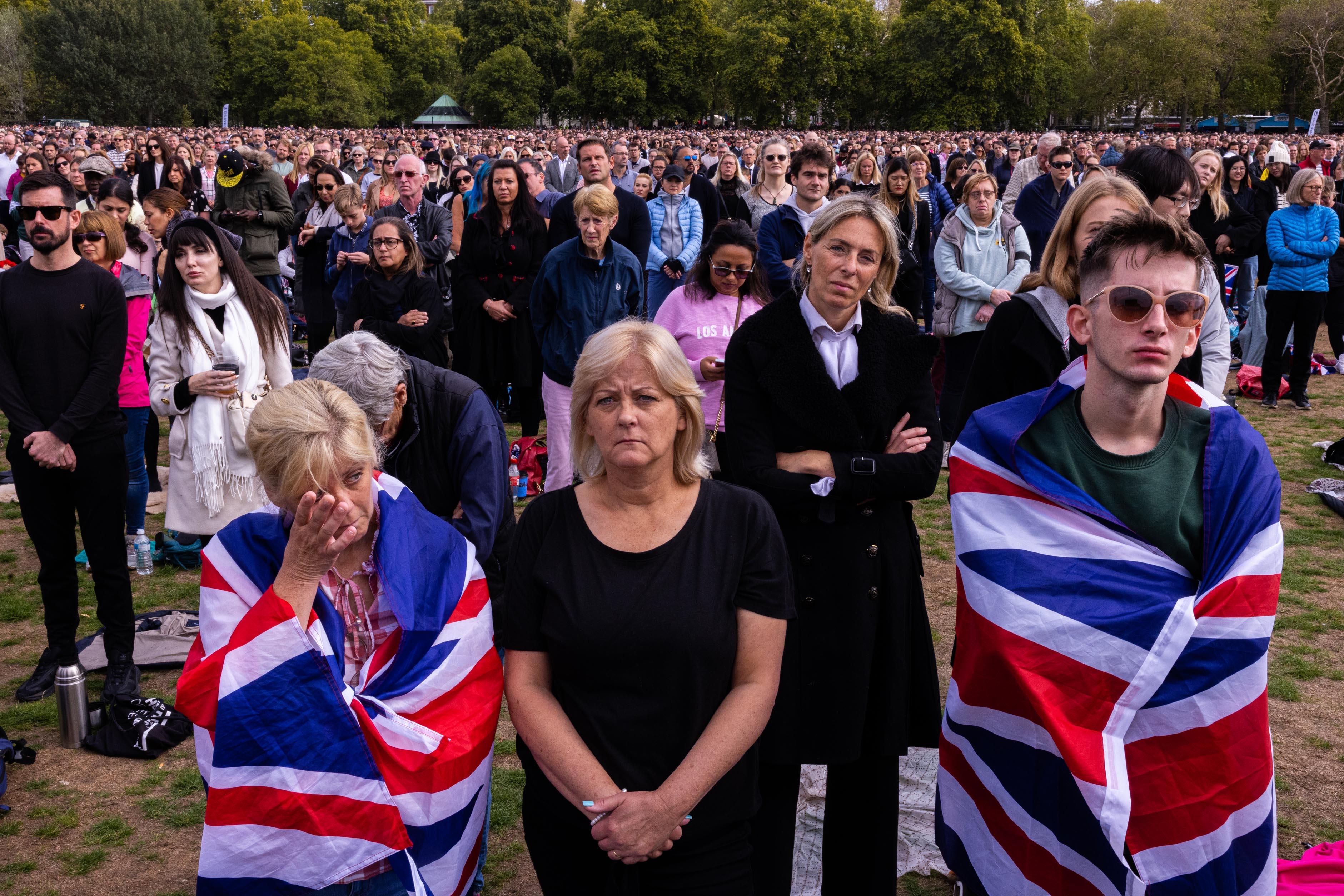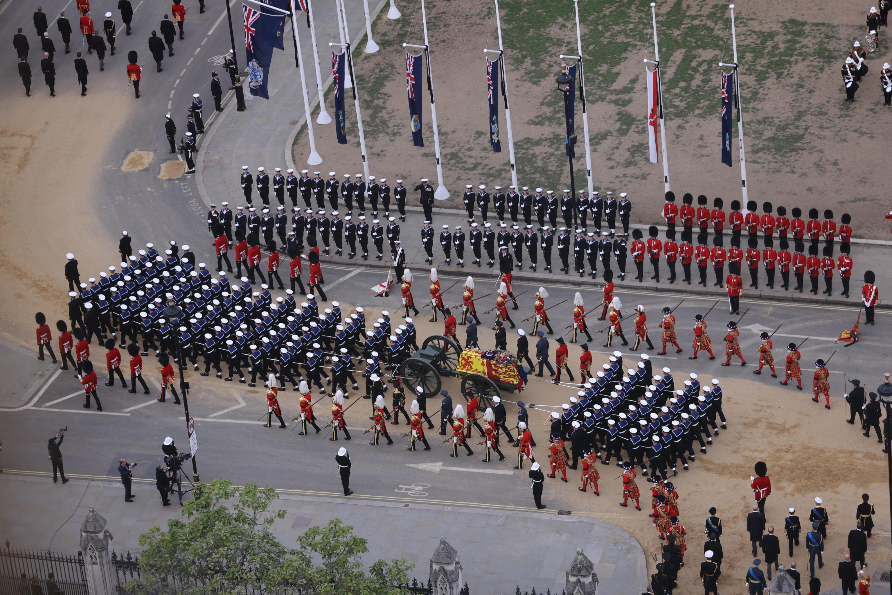 La camera ardente di Elisabetta II a Westminster (Ansa)Londra, mattina del 19 settembre 2022 (Ansa)La folla in attesa del passaggio del feretro (Ansa)Agenti della Polizia di Londra si preparano al corteo funebre (Ansa)Re Carlo III arriva a Wastminster (Ansa)La principessa del Galles Kate Middleton arriva a Westminster (Ansa)L’arrivo per la funzione della principessa Anna (Ansa)L’affusto con il feretro della Regina accompagnato dalla famiglia reale e dalla Royal Navy (Ansa)William e Harry. Quest’ultimo senza l’alta uniforme (Getty Images)Un ritratto di Elisabetta II in una chiesa di Sydney, Australia (Ansa)Meghan Markle e Camilla Parker-Bowles (Getty Images)Il dolore dei londinesi riuniti ad Hyde Park (Getty Images)La cerimonia funebre trasmessa dalla tv a Seoul (Ansa)Hyde Park Corner: il passaggio del feretro della Regina (Ansa)Il corteo sul Long Walk verso il castello di Windsor (Getty Images)