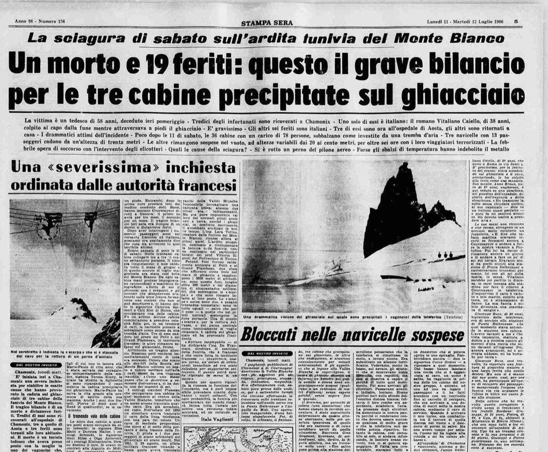 Passano 5 anni soltanto e la funivia è di nuovo teatro di una tragedia, oggi completamente dimenticata. Il 10 luglio 1966 per un guasto al pilone sospeso del Grand Flambeau un grappolo di tre cabine precipita per trenta metri nel vuoto. Il bilancio è di un morto (un turista tedesco di 58 anni) e tredici feriti.