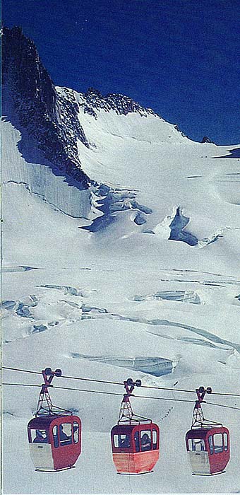 La funivia tra Punta Helbronner e l’Aguille du Midi è un impianto storico, progettato e realizzato tra il 1951 e il 1955 e rinnovato l’ultima volta nel 2000.