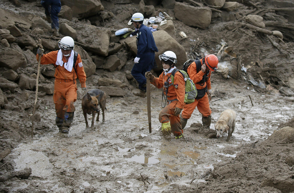 Dormivano sonni tranquilli quando, a notte fonda, le loro case sono state letteralmente inghiottite dal terreno trascinate da un mare di fango e detriti. È la terribile sorte toccata ad almeno 39 abitanti di Hiroshima, colpita nella notte di martedì da una gigantesca frana, scaturita da una catena di smottamenti dovuti alle piogge torrenziali che nei giorni scorsi hanno colpito la regione sud-occidentale dell’arcipelago giapponese. Sarebbero ancora sette le persone mancanti all’appello, ma è difficile stabilire un numero esatto dei dispersi. Il Primo ministro Shinzo Abe ha inviato sul posto circa 600 soldati soldati della forza di autodifesa per dare aiuto ai soccorritori, al lavoro senza sosta. Il terreno resta in parte impraticabile, mentre le immagini dagli elicotteri mostrano un panorama di desolazione assoluta nella zona colpita. Colline smottate e vallate rase al suolo. I danni si estendono, secondo i media locali, su una ventina di chilometri e coinvolgono diversi quartieri di Hiroshima, anche alcuni periferici dove la maggior parte delle abitazioni sono costruite in legno. Le autorità locali hanno disposto l’evacuazione di circa 65.000 persone da 26.000 case. Solo pochi giorni fa la regione sud ovest del Giappone è stata flagellata da un tifone di forte intensità. Nell’ultimo decennio, secondo il ministero del Territorio nipponico, nel Paese sono state registrate circa 1.200 frane all’anno, contro una media di circa 770 all’anno nel decennio precedente.
