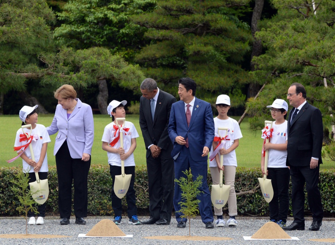 I Sette grandi della terra hanno raggiunto la penisola di Ise-Shima, nel sud del Giappone, dove oggi e domani si svolgerà il G7, accolti dal premier Shinzo Abe che ha scelto il tempio di Ise-Yingu, simbolo dello scintoismo e del Giappone imperiale, per accoglierli aprendo di fatto il summit.