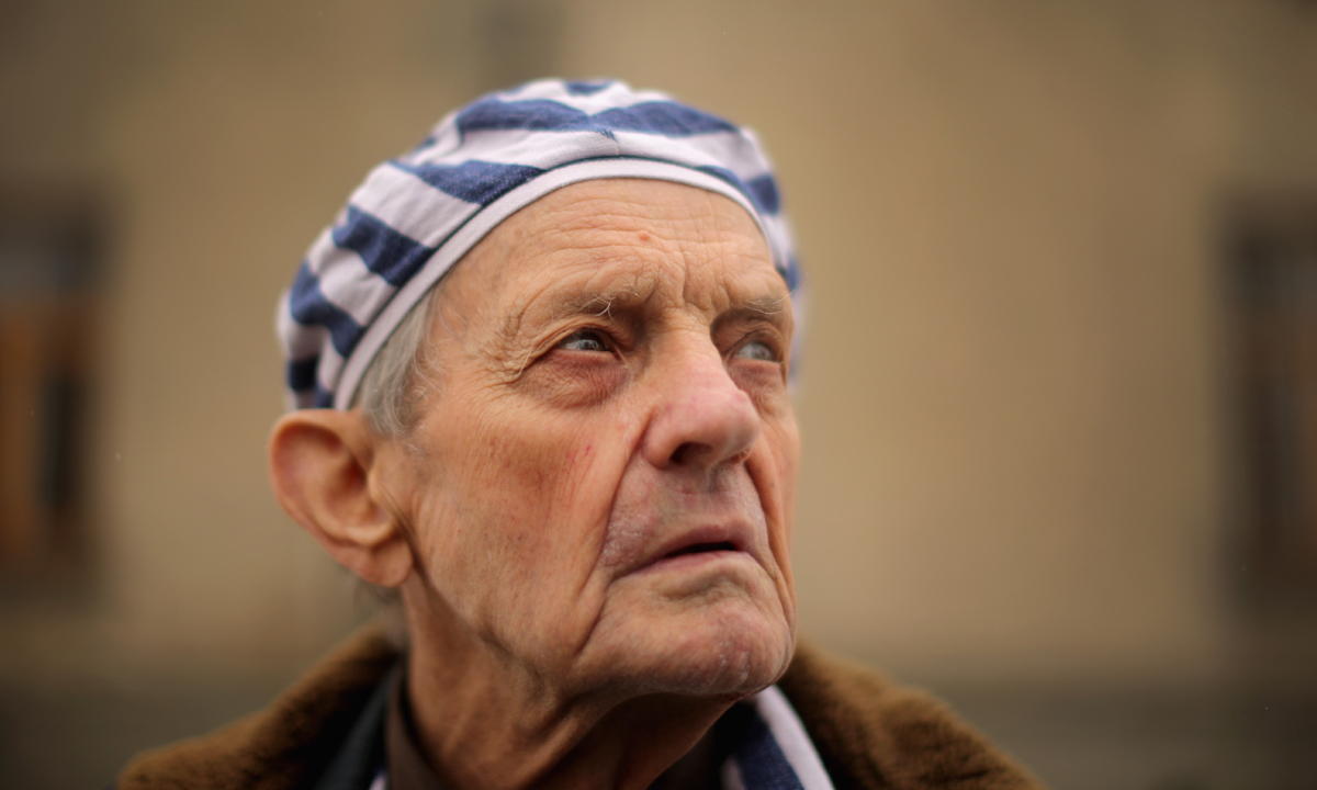 Oswiecim, Polonia, 26 gennaio 2015. Igor Malicky di Cracovia, 90 anni, immerso nei suoi pensieri durante la visita al campo di concentramento Auschwitz I.
