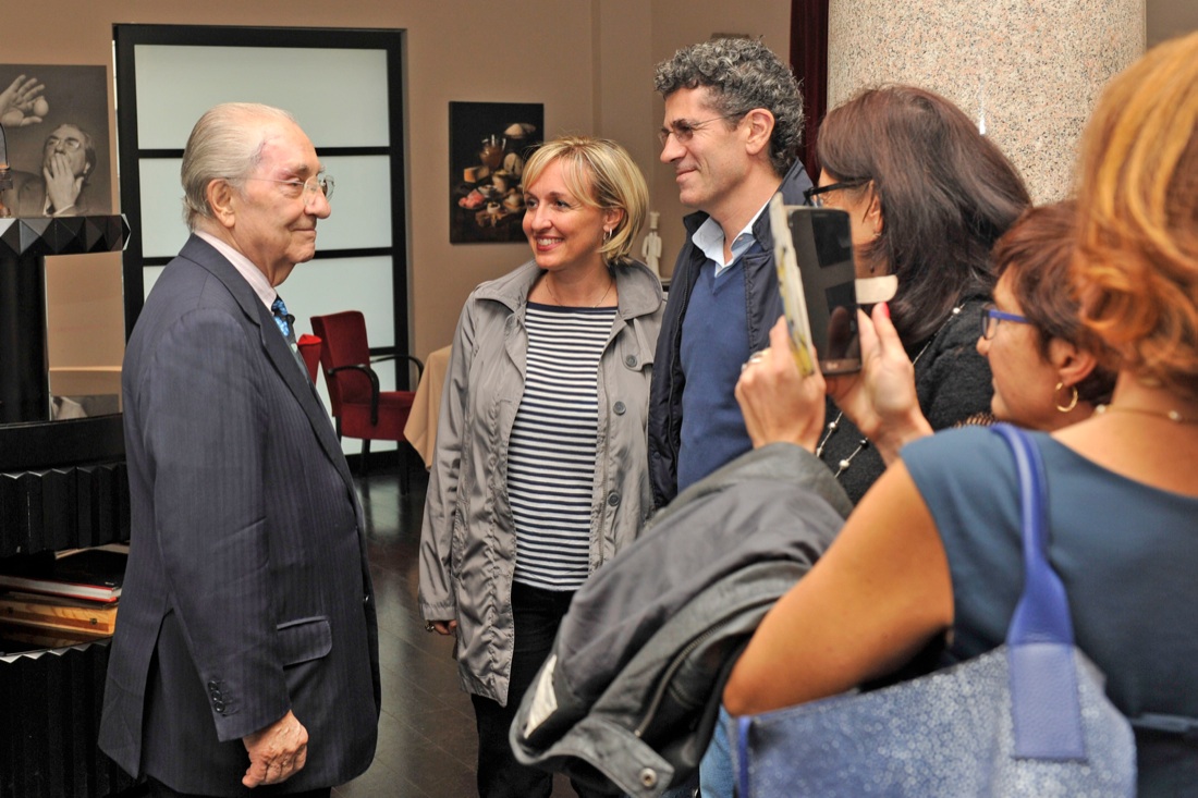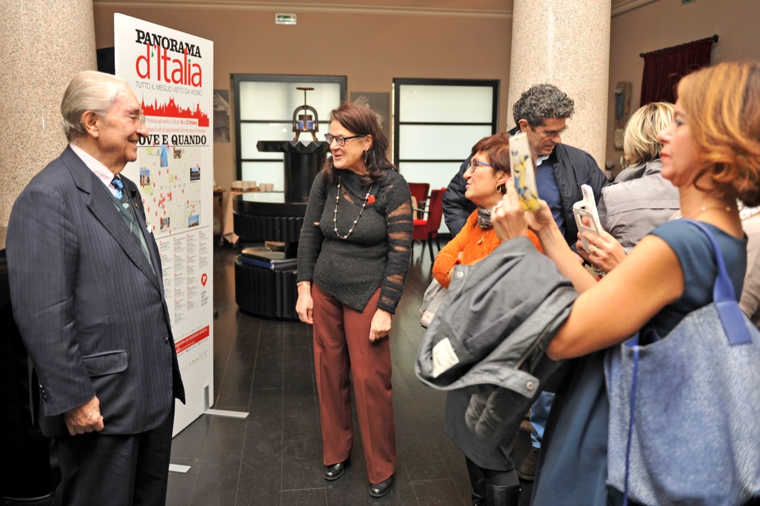 Cordiale e disponibile, il maestro Gualtiero Marchesi si intrattiene con i primi ospiti dello showcooking di Panorama d’Italia
