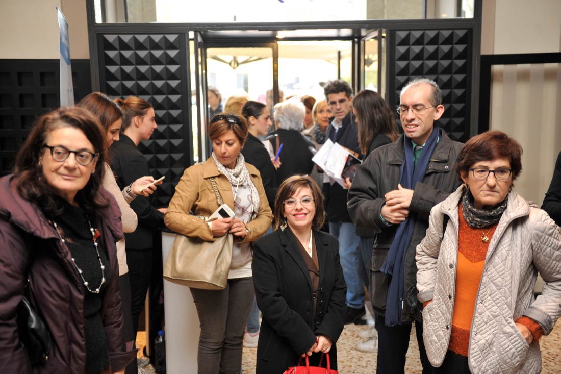 L’ingresso degli ospiti dello showcooking di Gualtiero Marchesi: le richieste di partecipare sono state più di 900