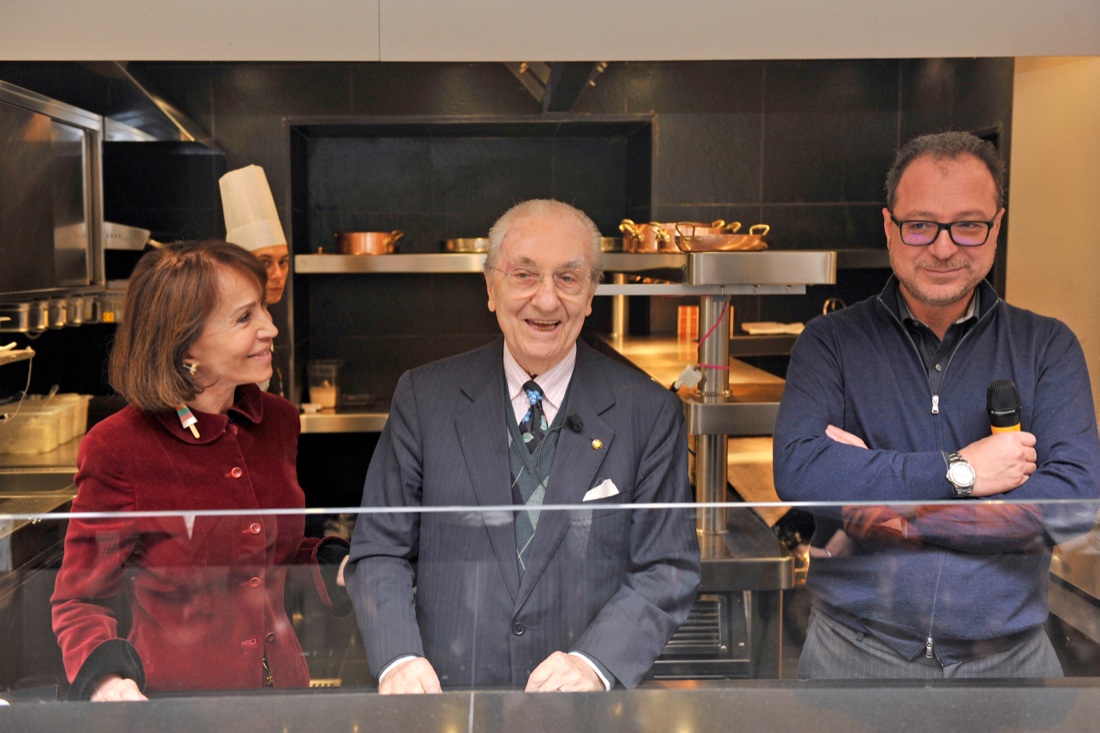 Gualtiero Marchesi con la giornalista Fiammetta Fadda e il direttore di Panorama Giorgio Mulè