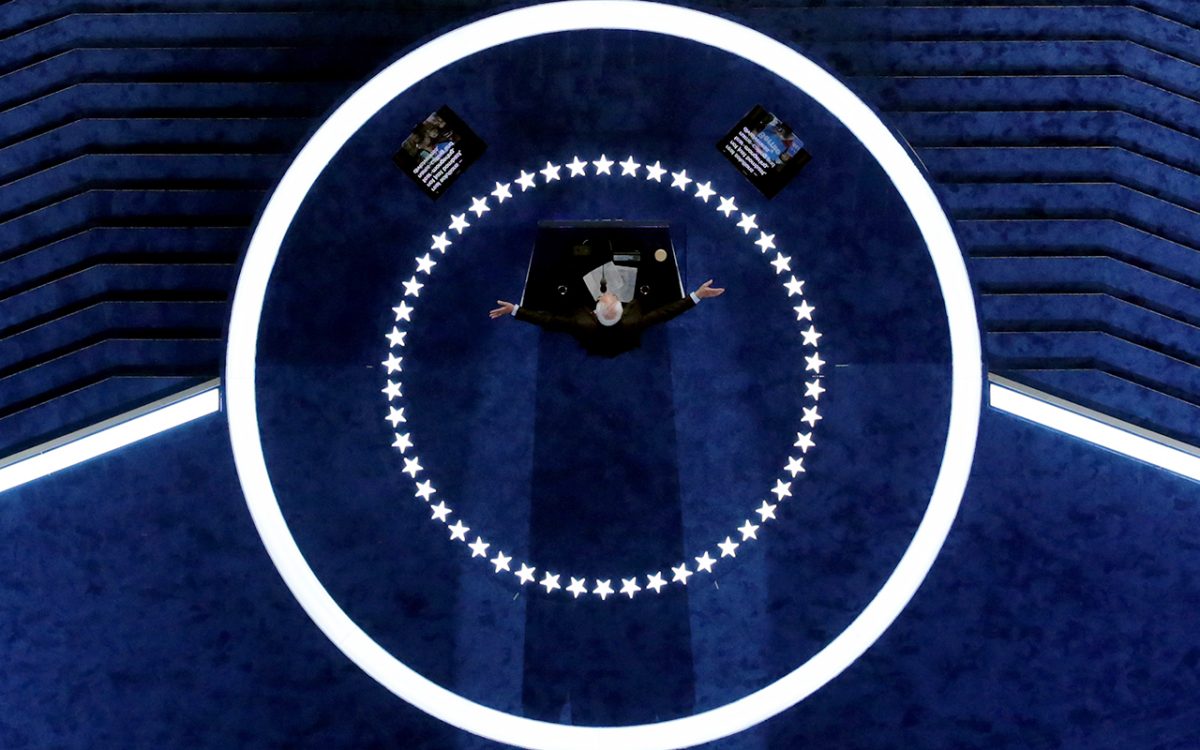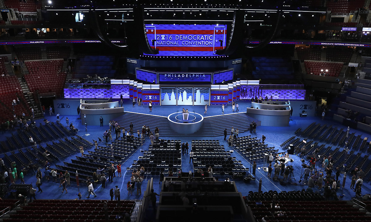 24 luglio 2016. La sala centrale del Wells Fargo Center di Philadelphia, in Pennsylvania, sede della Convention nazionale dei Democratici.