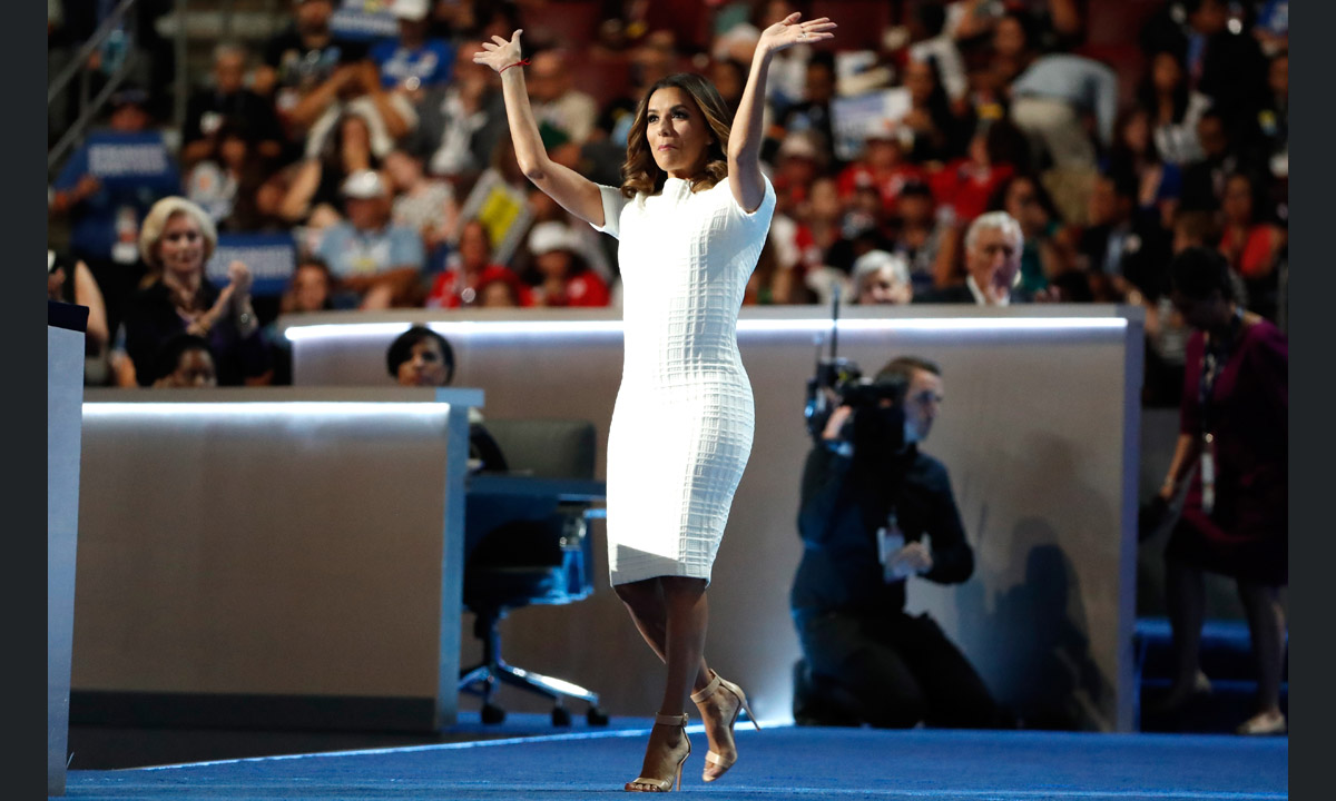 25 luglio 2016. L’attrice Eva Longoria sul palco della Convention nazionale dei Democratici, al Wells Fargo Center di Philadelphia, in Pennsylvania, USA.