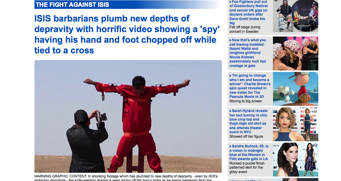 Il Mail pubblica soltanto un fotogramma del video, giudicando le immagini troppo violente per essere messo sul sito del quotidiano. Il filmato è intitolato “Deterring the Spies 1”, il che fa supporre che ci saranno altre esecuzioni dello stesso tipo.