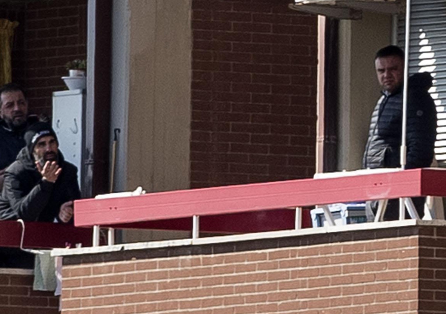 Un momento della trattativa tra le forze dell’ordine, sul balcone di sinistra, e il carabiniere Luigi Capasso, sul balcone di destra, Cisterna di Latina – 28 febbraio 2018