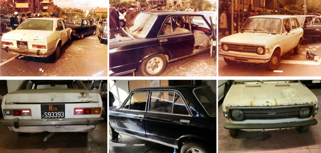 Le auto del Presidente della Democrazia Cristiana Aldo Moro dove persero la vita i 5 uomini della scorta e dove lo stesso statista fu rapito dall’azione rapida e micidiale del commando delle Brigate Rosse hanno attraversato quattro decenni, diventando un simbolo indelebile di quell’attacco sanguinario al “cuore dello Stato”.