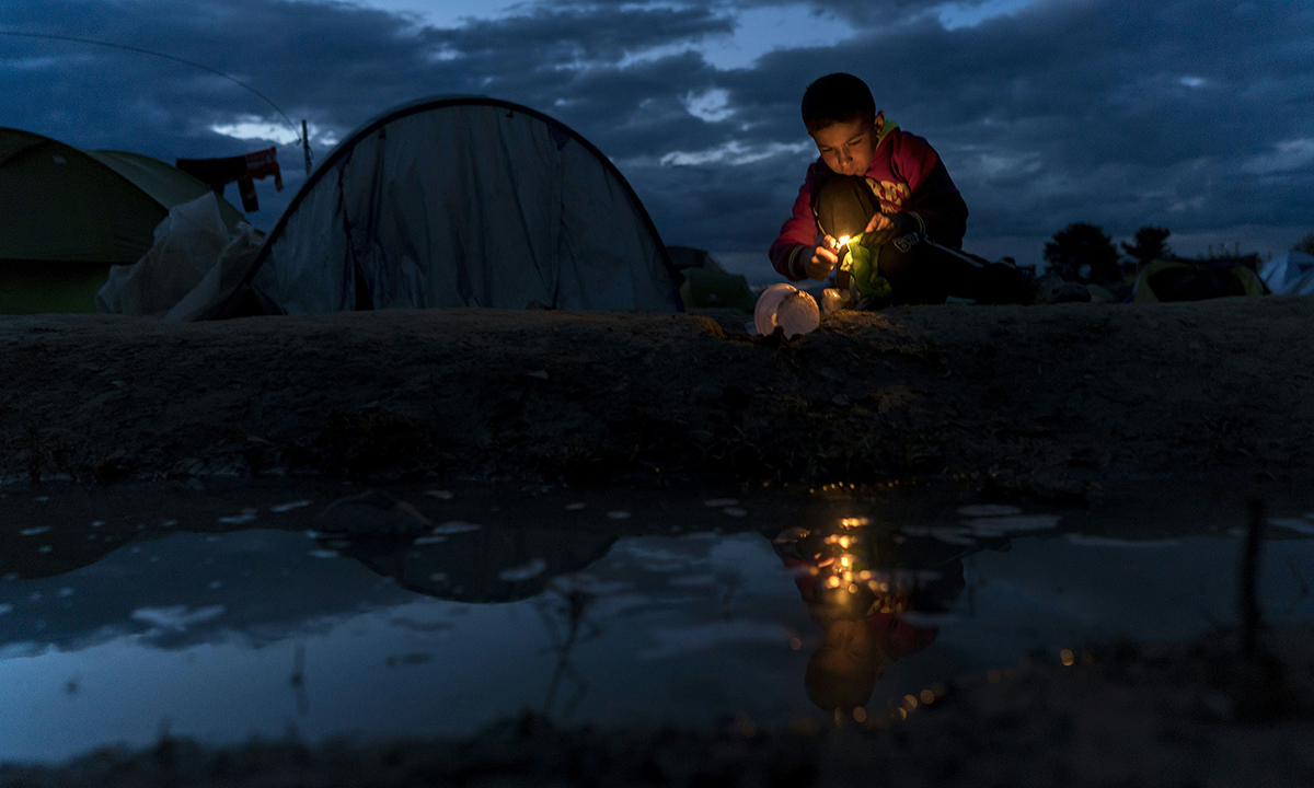 25 aprile 2016. Un ragazzo dà fuoco a un piatto di plastica usa e getta nel campo di fortuna per migranti e rifugiati vicino alla città di Idomeni, non lontano dal confine greco-macedone. Circa 54.000 persone, molte delle quali in fuga dalla guerra in Siria, continuano ad attendere qui la non prevista riapertura della frontiera, dopo la chiusura del percorso migratorio attraverso i Balcani avvenuta nel mese di febbraio.