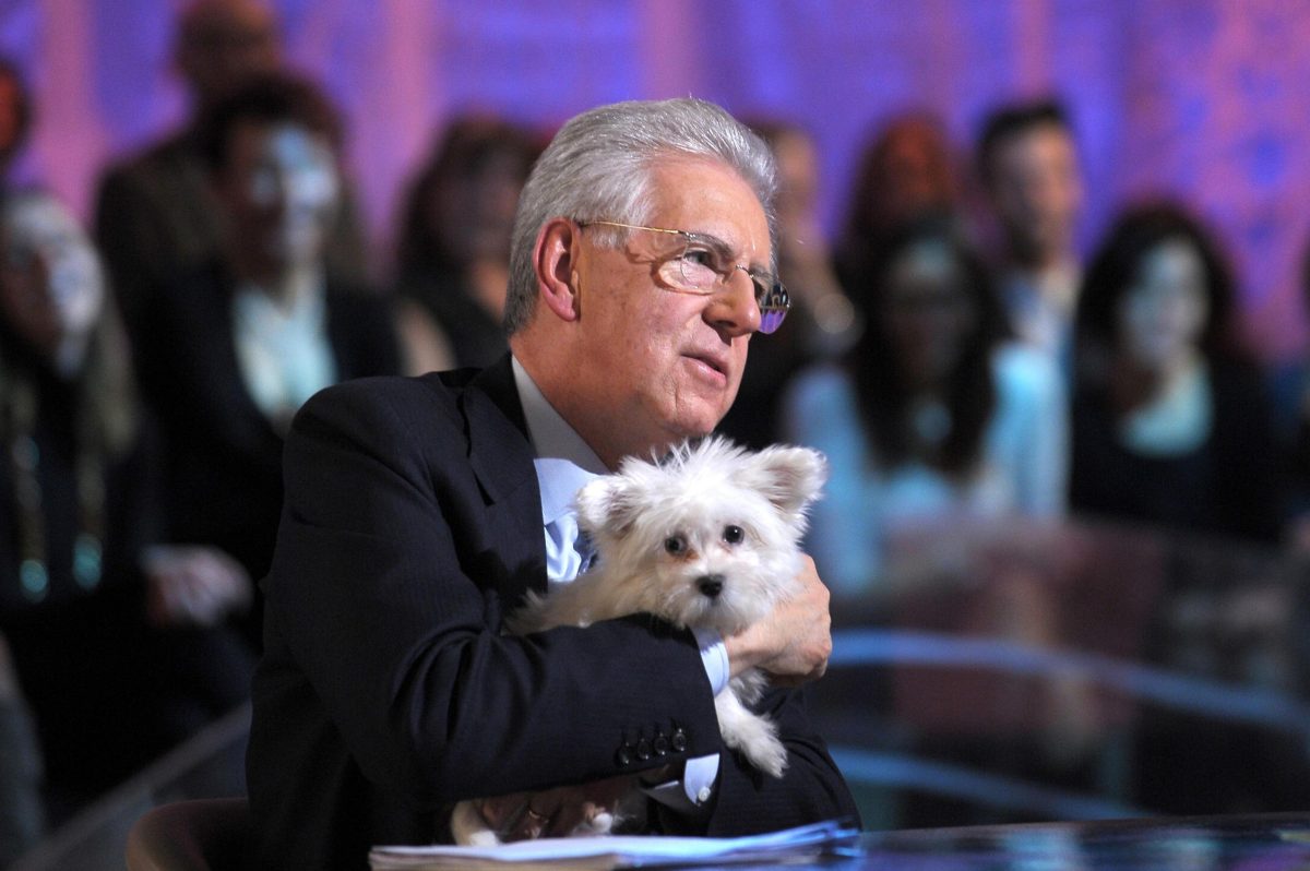 Prima c’è il test del cagnolino, un simpatico (empatico?) sgorbietto bianco che pare spostato da sopra un mobile, sedato per stare in braccio al premier senza stropicciargli la cravatta. “Lo adotterebbe?”, chiede Daria. “Un vile ricatto”, sfugge all’intervistato. “Come si sente?”. “Magnificamente bene”. Ma la freddezza è nello sguardo e nel modo meccanico di passare la mano sulla testolina di “Trozzy” (il Prof aggrotta la fronte guardando il vuoto, in cerca di un significato), quanto di più distante da una carezza. Poi, cupo, spiega di essere rimasto algido perché non ha ancora del tutto superato il trauma “della terza dipartita” di un cane, “per ragioni naturali, sottolineo” (chissà perché lo precisa: che succede di solito in casa Monti?), aggiunge che in un appartamentino (“appartamentino”, proprio così dice) qualche problema c’è a tenere un cane. Pian piano si scalda, deve “empatizzare”. E azzarda una battuta: “Sento che ha un cuore, perché batte”. Risate in studio (di sorpresa). Giocando sul leit motiv della puntata, “l’empatia”, butta lì che Trozzy “è empatico”. Dopo la pubblicità fa forza su se stesso, piega la testa e, “stella”, dice, schioccando un bacio, ma attento a non toccarlo.