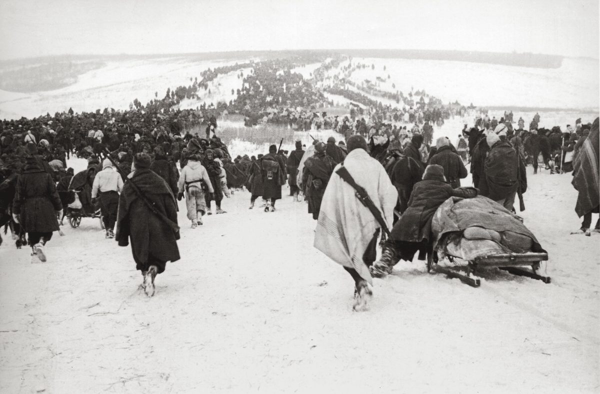 I comandanti dei Corpi d’Armata dell’Asse furono costretti a prendere atto che la spinta in avanti era da considerarsi esaurita e, non potendo continuare a procedere, ripiegarono. Dapprima in ordine, poi affrettatamente e, infine, con quella furia che sembrò una fuga, senza regole né disciplina. Compagnie senza comandanti e ufficiali senza soldati. Ognuno con l’obiettivo (e la speranza) di tornare a casa, passo a passo su una lastra sterminata di ghiaccio. Nessuna disposizione da impartire e, dunque, niente cui ubbidire.
