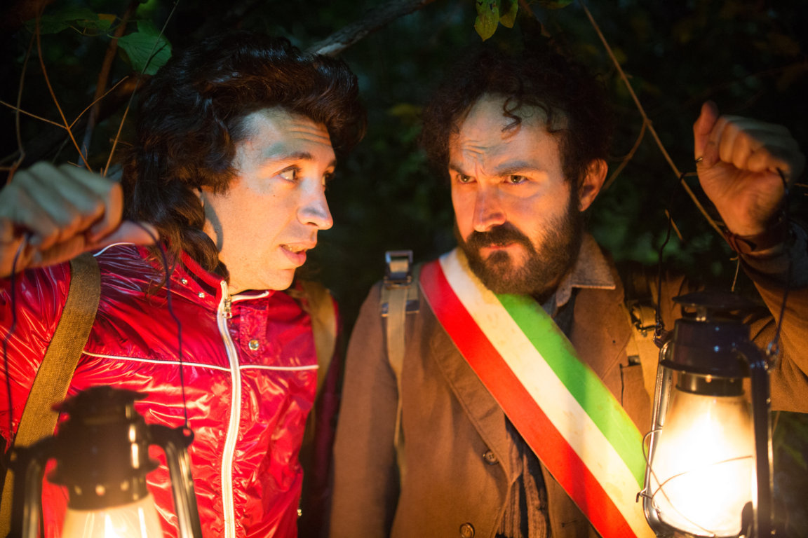 Il cartello sta là, piantato al ciglio dell’esile serpente d’asfalto che porta a un grappolo di case arroccate tra i monti molisani. Paese dimenticato. Forse non da Dio ma sicuramente dagli uomini e dalle donne: sia che ci abitino e vogliano scappare, sia che non ci abitino e che, dunque, neppure sappiano che esista. Di questo paese e del suo quasi nulla è sindaco Piero Peluria (Marcello Macchia/Maccio Capatonda), affiancato da un fratello vicesindaco più stralunato di lui, Marino Peluria (Luigi Luciano/Herbert Ballerina) che vive nel mito metropolitano di Campobasso sua terra promessa. Entrambi – ma non solo loro – al centro di Omicidio all’italiana che Maccio firma anche da regista (uscita in sala il 2 marzo) per la sua seconda prova alla macchina da presa dopo Italiano medio.