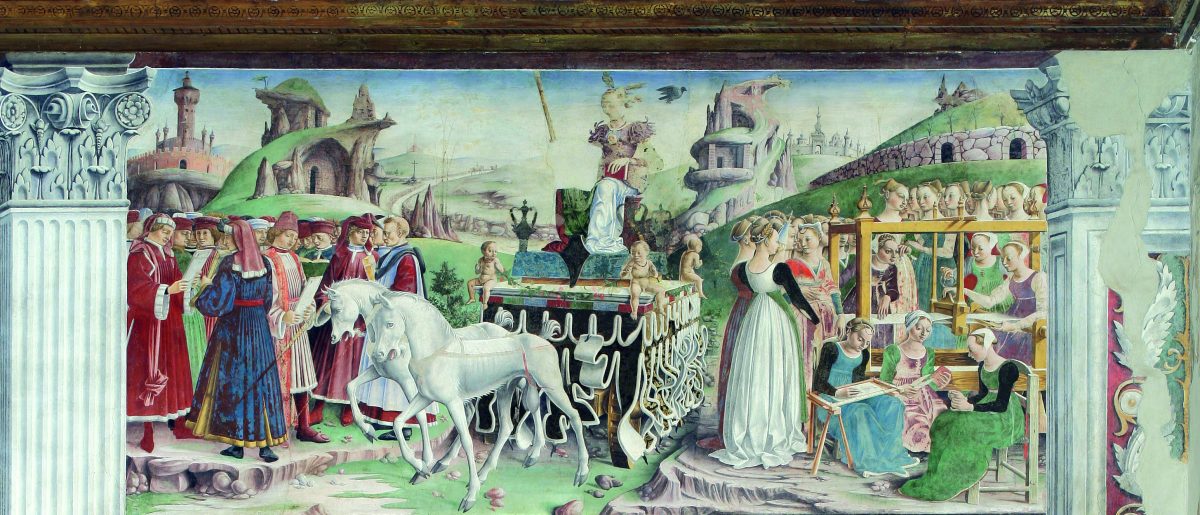 Alla fine della sua parete, con i mesi di Marzo, Aprile e Maggio, Francesco aveva chiesto, con candida convinzione, al duca Borso d’Este il giusto riconoscimento per il suo impegno. Il 25 marzo 1470 si lamenta per essere stato pagato per le pitture fatte a Schifanoia nella stessa misura degli altri pittori, nonostante egli per lungo e assiduo studio e lavoro ritenga di meritare di più. È notevole che, oltre al riconoscimento del proprio merito («et massime considerando che io, che pur ho incomenciato ad avere uno pocho di nome, fusse tratato et iudicato et apparagonato al più tristo garzone de Ferara»), e dello studio («et continuamente studio»), il Cossa rivendica l’uso «de oro et de boni coluri», e chiede non il giusto ma il dono di «quella parte li pare, de gratia et benignitade Sua», per aver «lavorato quaxi el tuto a frrescho, che è lavoro avantazato e bono, e questo è noto a tuti li maistri de l’arte».