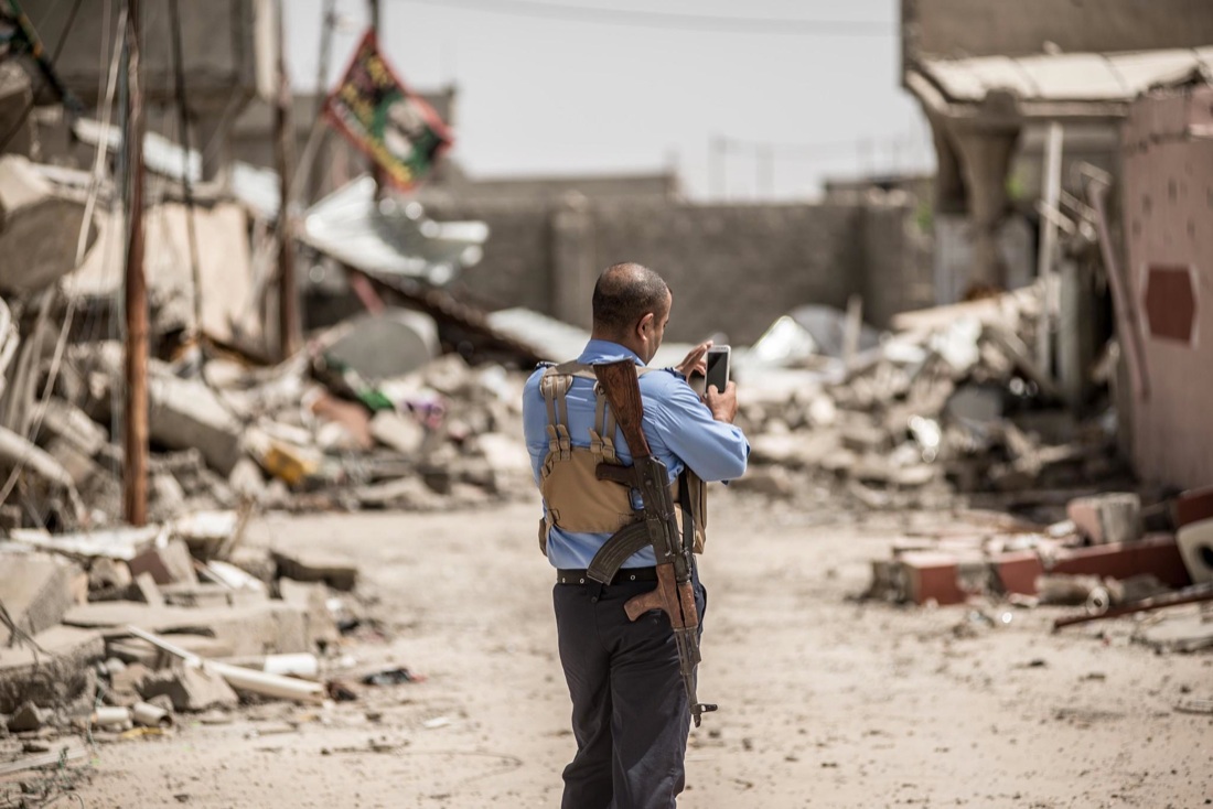Una città distrutta dalla guerra. Secondo l’organizzazione non governativa Oxfam il 16% di tutte le persone che sono fuggite dalla violenza, persecuzione della guerra civile sono finite in un altro paese anch’esso in stato di emergenza a causa dei conflitti interni, 15 settembre 2016