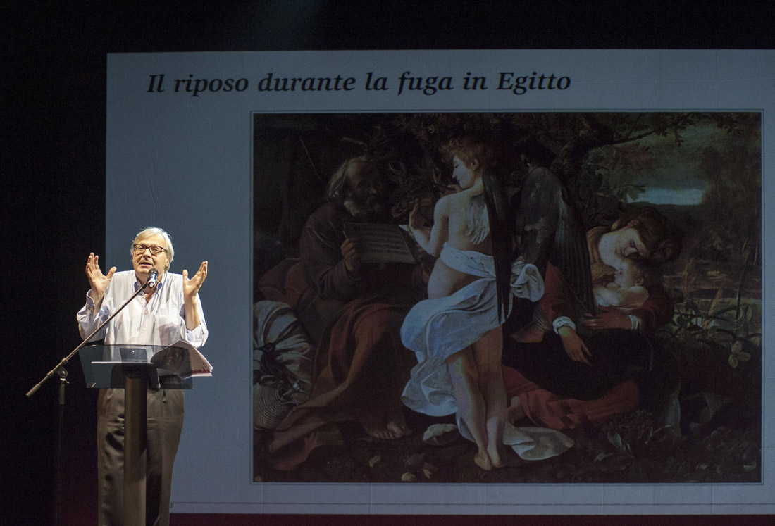 Vittorio Sgarbi durante la sua lectio magistralis su Caravaggio a Milano – 19 ottobre 2017