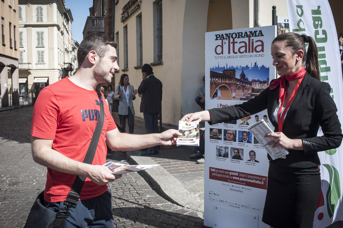 La distribuzione di materiale informativo al desk Panorama d’Italia a Pavia – 17 maggio 2017