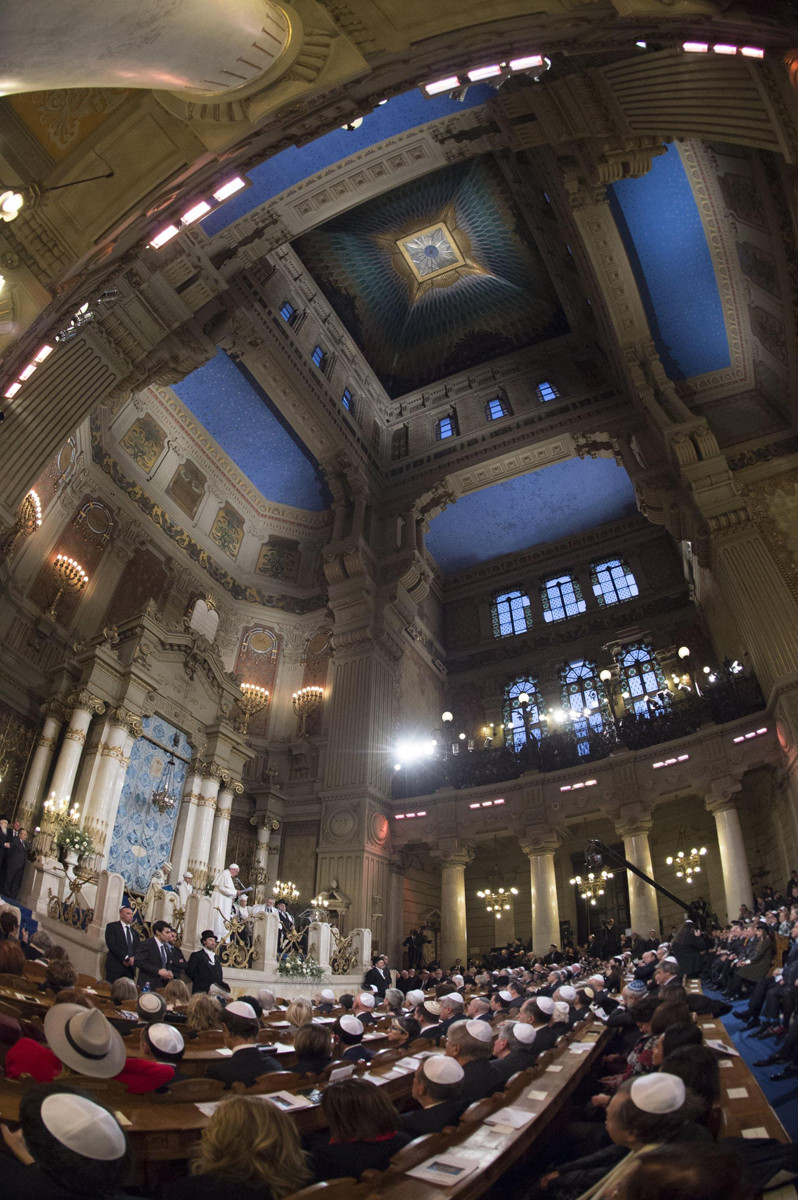 A precedere il discorso del Papa, quelli della presidente della Comunità ebraica di Roma, Ruth Dureghello, del presidente dell’Unione delle Comunità ebraiche italiane Renzo Gattegna e del rabbino Di Segni.