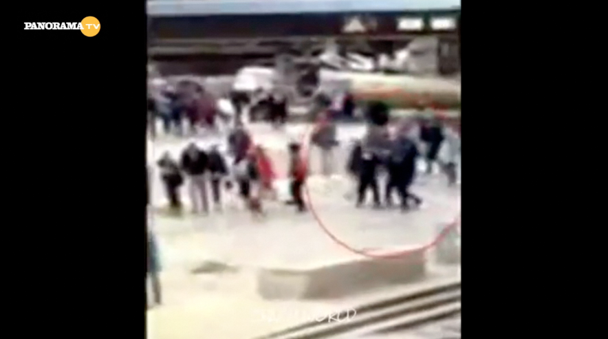 Nella scena si vede come il terrorista scagliarsi contro i tre agenti; uno viene colpito e ferito ma la reazione delle forze dell’ordine è rapida ed efficace. Il terrorista resta a terra ma nella piazza resta la paura