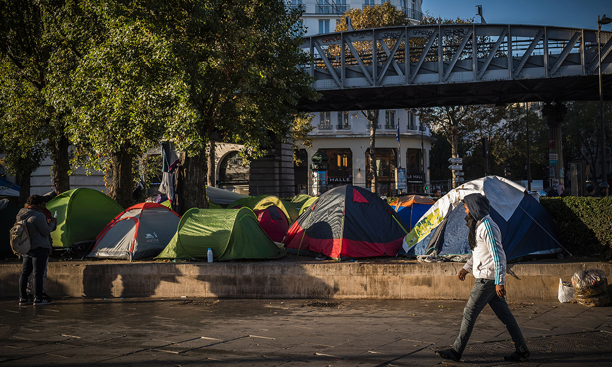 3 novembre 2016. Migranti accampati vicino alla fermata del metrò di Stalingrad a Parigi.