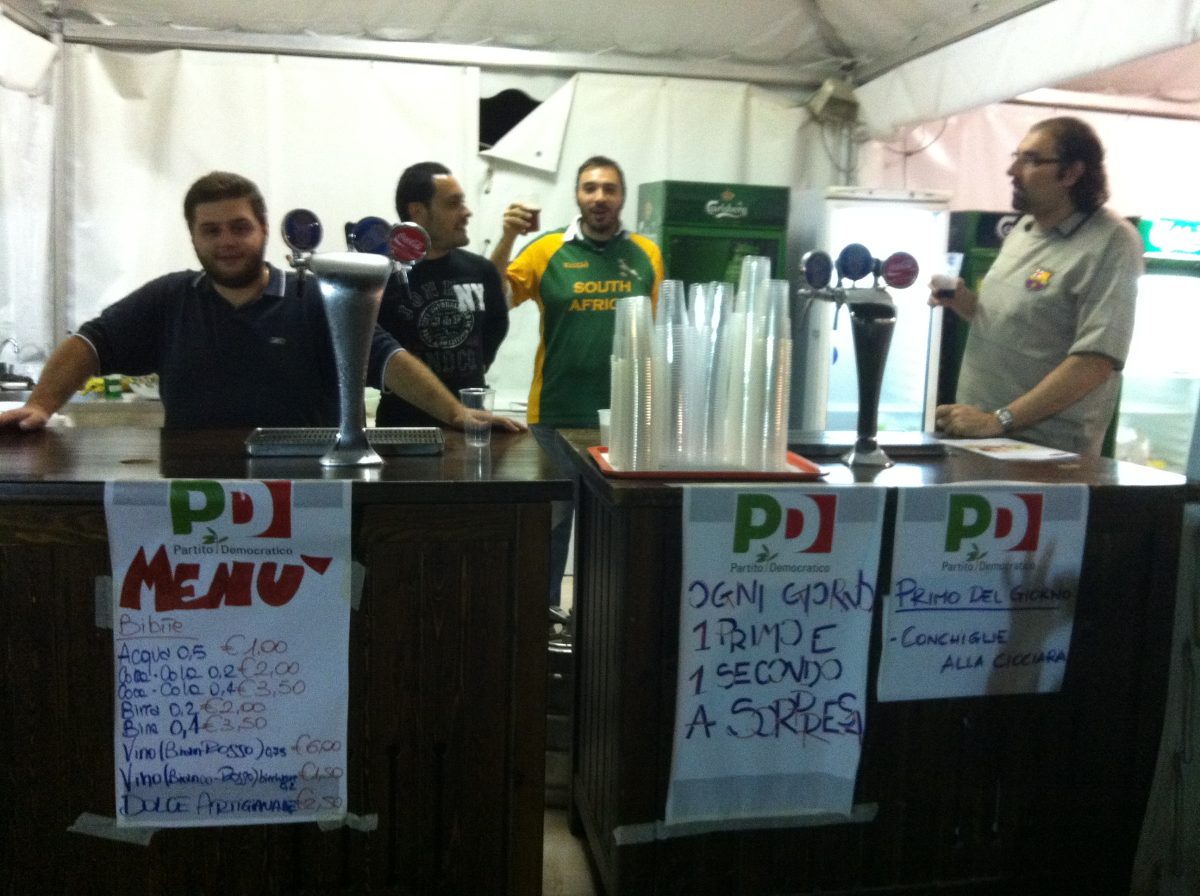 Sotto un cielo carico di pioggia Panorama.it è andato a sondare gli umori nella casa, anzi nella cucina, di un Pd in subbuglio tra ipotesi di alleanze improbabili e lo scontro tra vecchi e giovani del partito in vista della primarie. Parola ai militanti veri, dunque, quelli che girano tra i tavoli a vendere i biglietti della riffa – primo premio un week end a Ischia per sette persone (ma perché proprio sette?), ultimo due settimane di abbonamento in palestra – e che passano le loro ferie a friggere patatine dietro gli stand delle feste dell’Unità. Non solo quelle nazionali, dove almeno può capitare di riuscire a stringere la mano al leader, ma anche quelle di quartiere, dove al massimo puoi incontrare il segretario del circolo di zona. Le festicciole settembrine minacciate, come in questi giorni, di finire allagate dai temporali e disertate dal pubblico.