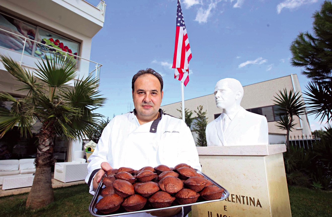 Un sogno americano che diventa realtà, ma dall’altra parte del mondo, dall’oceano fino al tacco d’Italia. È l’irresistibile ascesa di Angelo Bisconti, 43 anni, pasticciere di Monteroni, piccolo centro della provincia di Lecce, ormai residente a Campi Salentina, a una manciata di chilometri di distanza, dove sorgono i suoi laboratori. Che ogni settimana sfornano 25 mila pasticciotti «Obama»: un nome, una garanzia per un nuovo protagonista dell’arte dolciaria, che grazie a una semplice intuizione ha preso al volo il treno della globalizzazione e ha scalato posizioni su posizioni. Fino a diventare imprenditore dell’anno in terra di Puglia mettendosi alle spalle 238 candidati. Il segreto è la ricetta di una specialità ispirata al presidente americano. Si tratta di una rivisitazione a stelle e strisce del pasticciotto salentino, proposto non con la crema pasticciera, come vuole la tradizione pugliese, ma con il cioccolato.