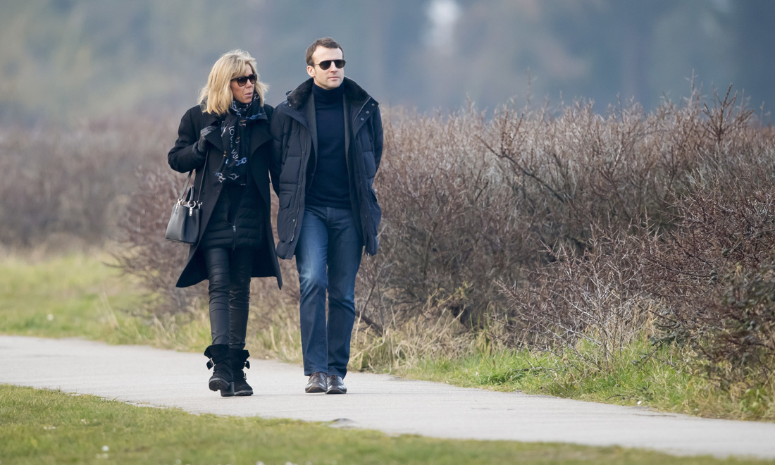 Emmanuel Macron passeggia con la moglie Brigitte Trogneux a Touquet, in Francia. 12 marzo 2016.
