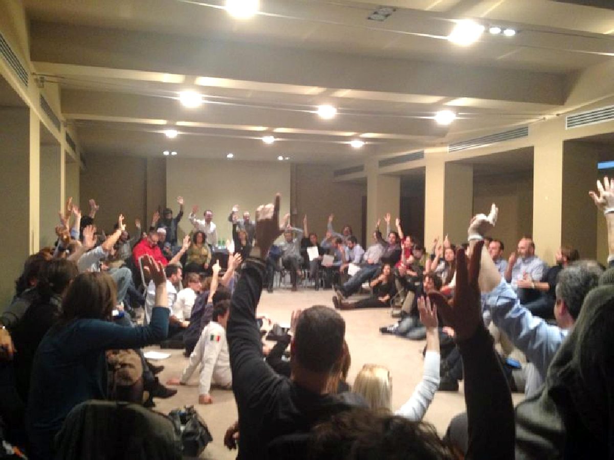 “I deputati? Quelli si mescolano alla folla, attenti a non farsi riconoscere”, dice qualcuno che sembra saperne un po’ di più. Un altro, assai gentile, che si presenta come Piero e ti stringe anche la mano, si schermisce: “Siamo un po’ disorganizzati, eh? Ma sa, dobbiamo imparare. Faremo del nostro meglio. Siamo brava gente. Non dovete mica aver paura”. Ma avete visto il Cappellaio Matto (l’attivista Emiliano Martino, ndr) ieri a In Onda? Siete d’accordo con quello che dice?, chiediamo. Molti fanno spallucce, qualcuno borbotta, altri (forse anche giustamente) il programma di La7 non sanno cosa sia. Alla fine un signore sulla sessantina si prende di coraggio: “Ecco, io non credo che tutte queste trovate folkloristiche facciano bene al movimento. Grillo tutto incappucciato, il Cappellaio Matto, quell’altro lì… Così finisce che non ci prendono sul serio. Che davvero facciamo la figura dei pagliacci”.