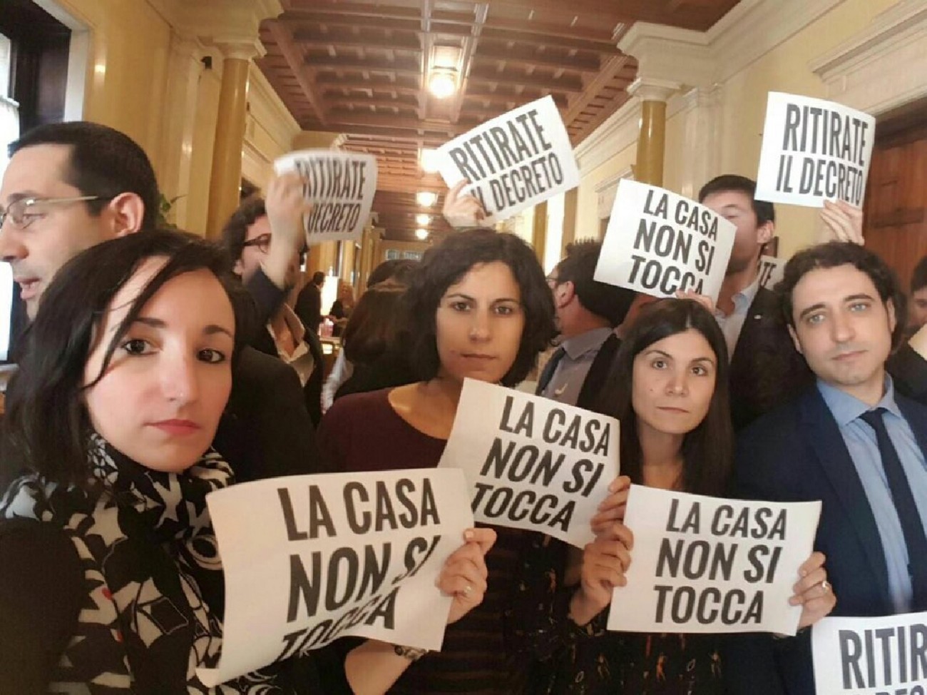 Il messaggio resta quello che il governo “vuole togliere la casa ai cittadini”. “Niente contentini – dunque – noi esigiamo il ritiro del provvedimento”. Un provvedimento “ignobile” secondo i pentastellati in quanto non terrebbe conto del fatto delle difficoltà di chi, dopo aver pagato la casa per anni, “si ritrova in un momento di difficoltà, forse perché ha perso il lavoro o ha un malato in famiglia”.