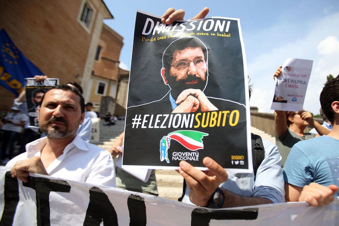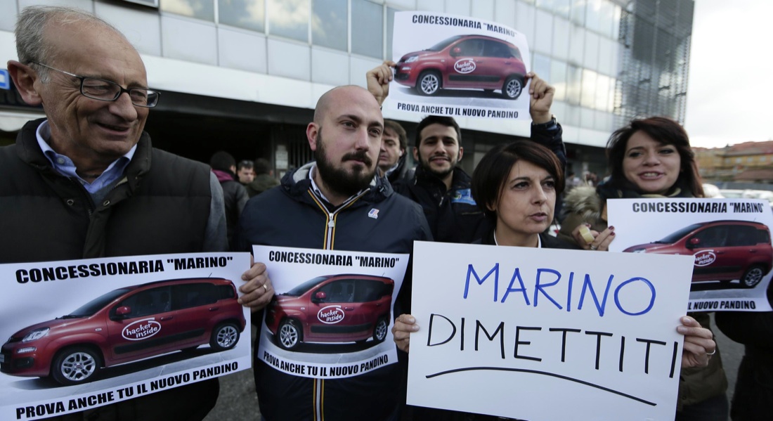 I manifestanti contro Marino sotto il Campidoglio a Roma