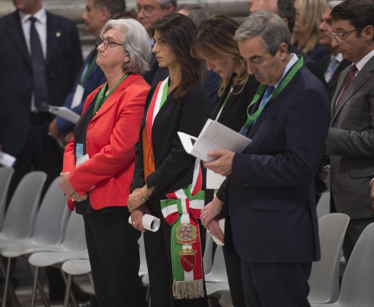 Virginia Raggi, Rome’s new mayor, during her first official engagement at a Jubilee event, Rome, 22 June 2016. Raggi, 37, from the anti-establishment 5-Star Movement (M5S), became Rome’s first woman mayor, and the youngest ever, with a landslide victory in a run-off Sunday. ANSA / GIORGIO ONORATI