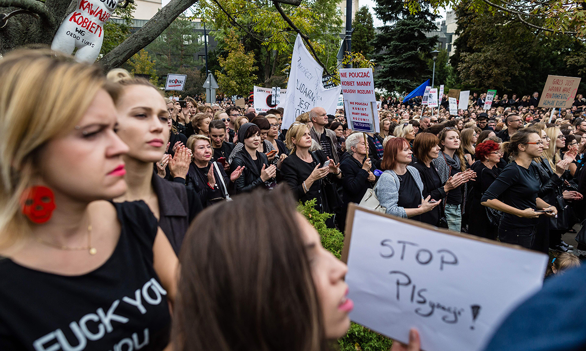 Niente cena sul tavolo e letti sfatti, niente lavoro né lezioni all’università: si è svolto anche così il “lunedì nero” delle donne polacche, scese in piazza “vestite a lutto” per protestare contro una proposta di legge che prevede il divieto assoluto di abortire, all’esame della camera bassa, il Sejm, dove la maggioranza assoluta è nelle mani del partito conservatore Diritto e giustizia (Pis) del leader Jaroslaw Kaczynski, al potere dall’ottobre 2015.