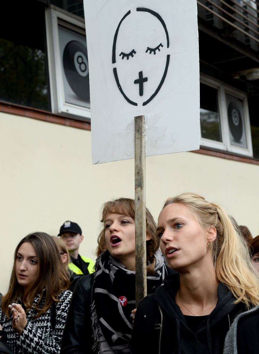 2 ottobre 2016. Manifestazione a sostegno della “protesta nera” delle donne polacche davanti all’ambasciata della Polonia a Kiev, Ucraina.