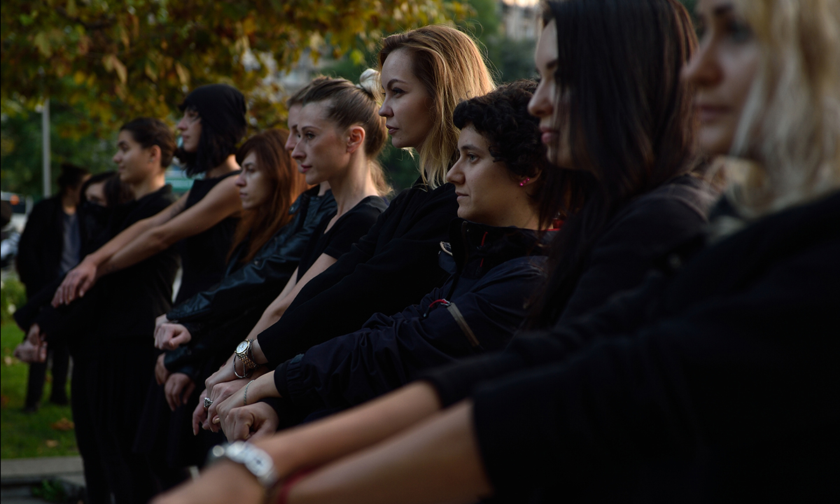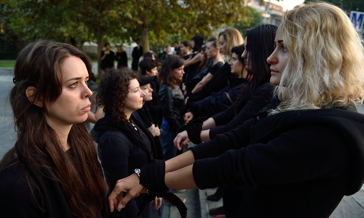 3 ottobre 2016. Una manifestazione di sostegno alle proteste contro la proposta di legge che vieterebbe l’aborto in Polonia, in Piata Universitatii a Bucarest, in Romania.