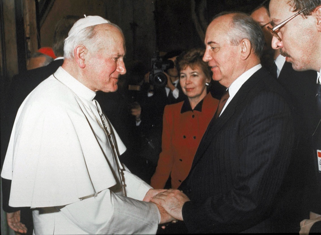 Gorbaciov e Papa Giovanni Paolo II: Vaticano, 1 dicembre 1989.