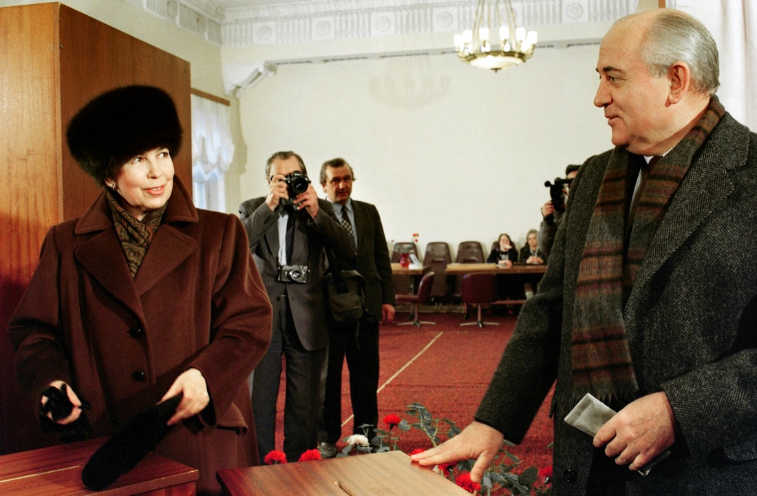 Gorbaciov e Raissa al voto il 17 marzo 1991, primo Referendum sovietico sull’assetto federalista dell’URSS.