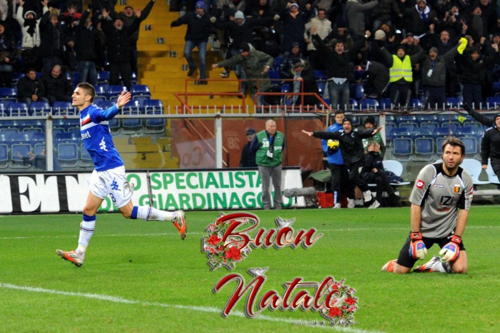 Per il popolo sampdoriano meglio di così non poteva andare, soprattutto dopo una vigilia tesa e sette sconfitte consecutive. L’attacco in super emergenza impone a Ferrara scelte rischiose: 4-5-1 con Icardi come unica punta in un palcoscenico da pelle d’oca. Pronti, via. La partita inizia in modo equilibrato ma fino al 16′: Andrea Poli sceglie il giorno migliore possibile per segnare il suo primo gol con la Samp, il centesimo blucerchiato nei derby. Con il passare dei minuti si fa spazio una teoria: Delneri non ci ha tradito, è andato da loro per continuare a fargli male. Il Genoa ha poco gioco, il centrocampo rossoblù è quasi inesistente, il precario stato di forma di Borriello e Immobile si vede eccome. La difesa genoana emoziona noi e fa paura a loro. Al 36′ Icardi si invola sulla destra mette in mezzo: acrobazia di Cesare Bovo che segna sotto la nord per il 2-0 blucerchiato.