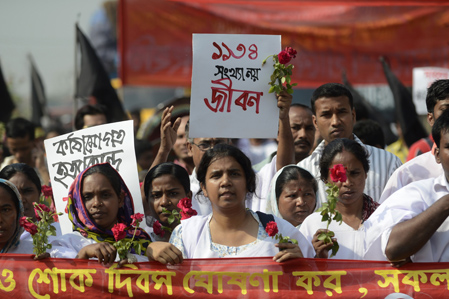 Un anno fa un palazzo di otto piani a Dakha capitale del Bangladesh, crollò uccidendo 1.138 persone , per lo più operaie di fabbriche di vestiti low cost per i negozi occidentali, oltre 2 mila furono estratte vive dalle macerie.