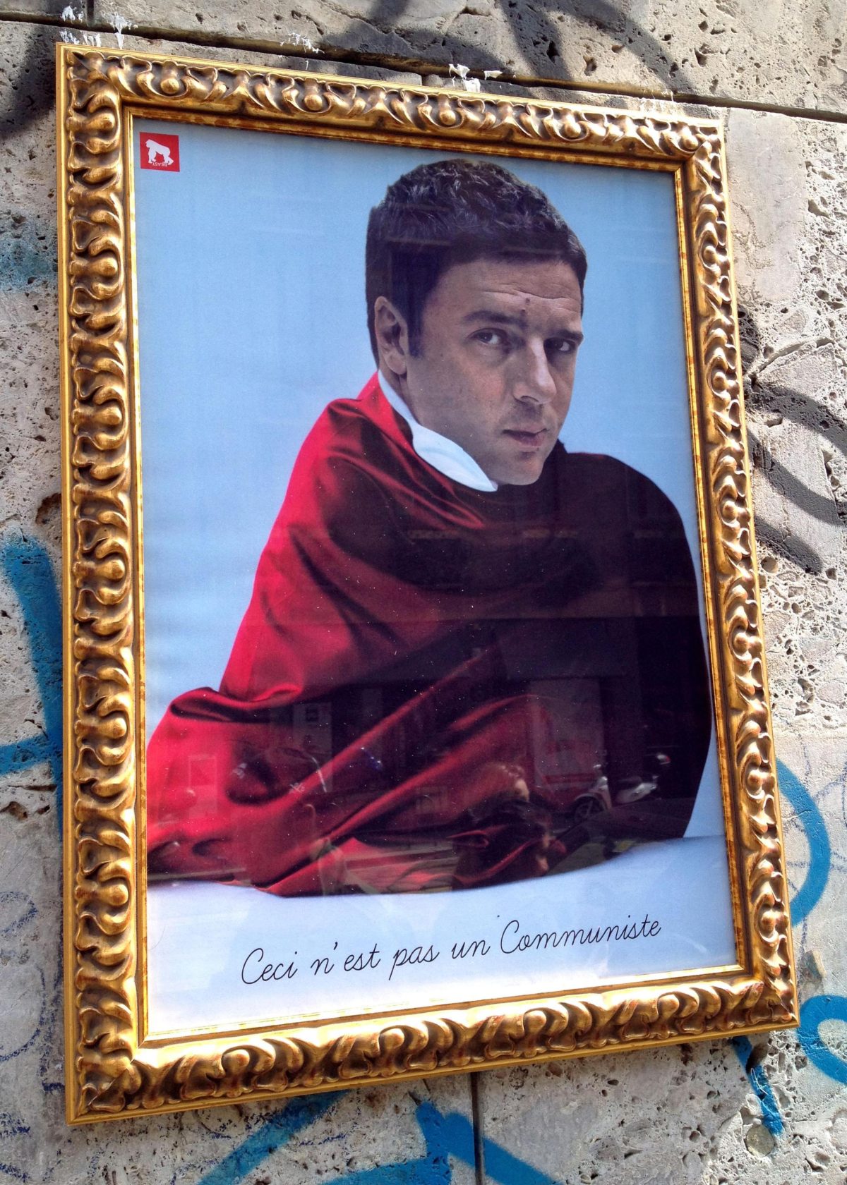Con un’operazione che ricorda la settimana Incom, i giornali italiani stanno facendo di lui la nuova autobiografia della nazione. Mentre il settimanale The Economist lo definisce «un giocatore di azzardo», nelle nostre redazioni si costruisce la nuova teologia, si racconta il mito del predestinato a riscattare dalla politica gretta e meschina e dal giogo tedesco di Angela Merkel. La cronaca del suo incontro con la cancelliera, sulCorriere della Sera, è ode e gastronomia: «Mentre sfilavano diverse portate: insalata di melanzane, fagiolini e pomodoro (…) Renzi ha cercato di spiegare cosa intende fare: Stiamo provando a fare una pacifica rivoluzione». L’incontro con Barack Obama è invece un testo veterotestamentale: «E in Renzi (…) Obama, ingrigito, scolpito dal tempo, rivede se stesso, il suo entusiasmo, la sua energia e il colore dei suoi capelli».